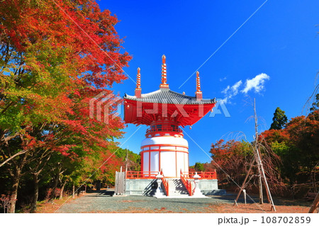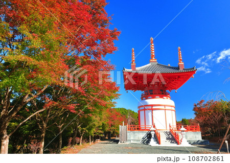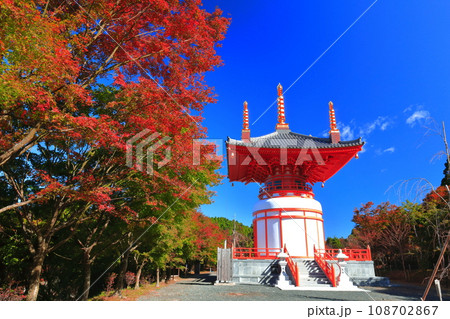 【福岡県】晴天の呑山観音寺の瑜祇大宝塔の紅葉