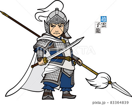 槍を構え武装する三国志の趙雲子龍【白黒】