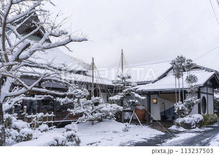 京都市 三千院門跡 夕暮れ時の大原温泉芹生(せりょう)