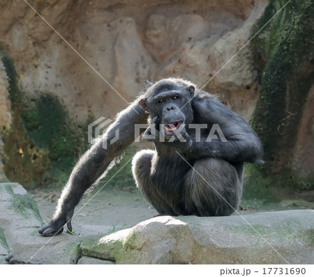 Chimpanzee scratching its chin