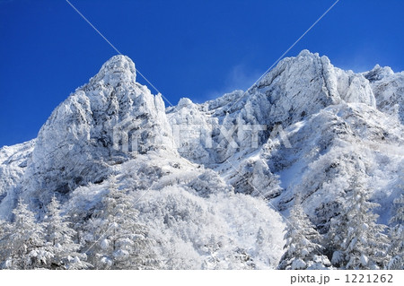厳冬の八ヶ岳連峰・横岳の岩峰と中央アルプス