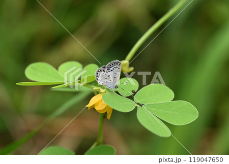 ヤハズソウの葉でやすむ「ヤマトシジミ」