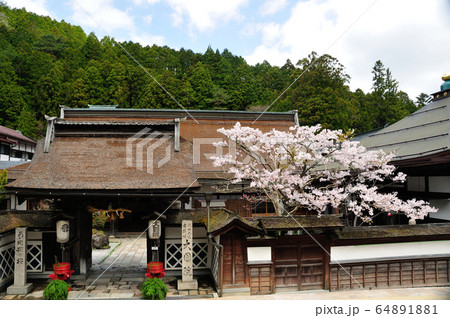 桜咲く大圓院表門 (高野山)
