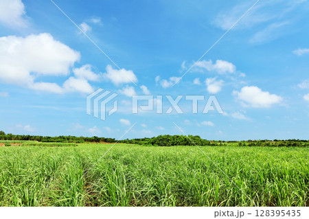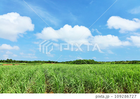 沖縄県 宮古島 夏の青空とサトウキビ畑