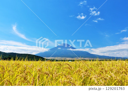 秋の青空と田んぼ そして富士山