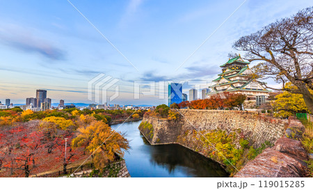 Osaka Castle beautiful attraction ancient architecture landmark, Osaka Castle in autumn, Landscape view osaka castle museum, Osaka City, Kansai, Japan.
