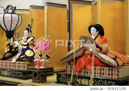 昔ながらの伝統のお雛様(女雛、男雛、三人官女 愛知県 豊田市)