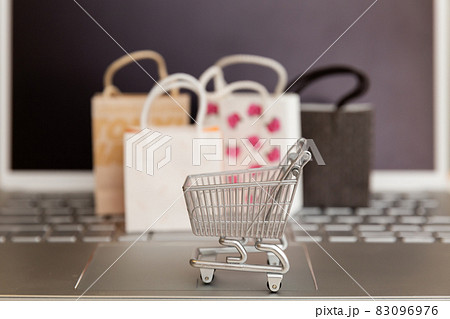 ネットショッピング 通販サイトのイメージ ショッピングカートとパソコン