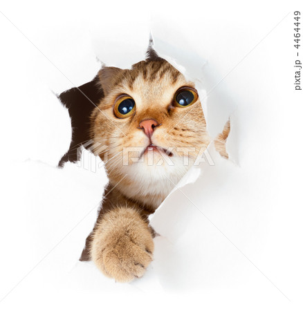 cat in paper side torn hole isolated