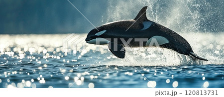 jumping orca in summer ocean waters