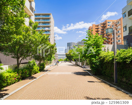 東京都中央区晴海 快晴の晴海の超高層マンション群(タワーマンション)と周辺の街並み