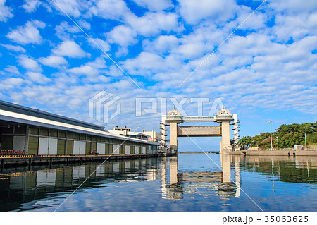 静岡県沼津市 快晴の沼津港大型展望水門 びゅうお