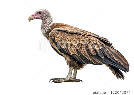 A majestic vulture stands tall on a white background, its keen eyes and powerful beak ready to soar. Wildlife Animals.