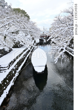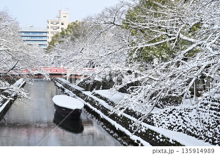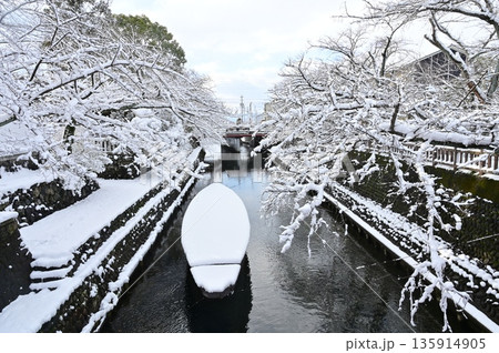 水門川の大垣船町川湊の雪景色(岐阜県大垣市)