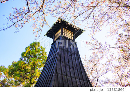 桜満開の船町港&住吉燈台