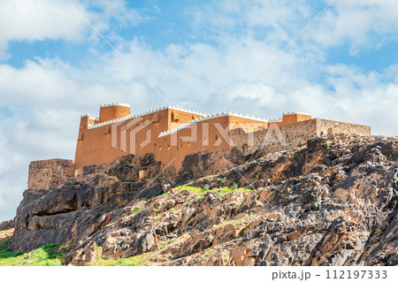 Arabian Aarif fortress walls and towers standing on the hill, Hail, Saudi Arabia