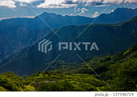 北アルプス・三俣蓮華岳から見る槍・穂高連峰