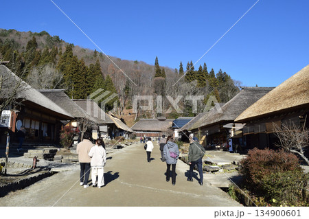 福島県南会津郡の大内宿の山形屋、玉木屋、みのや