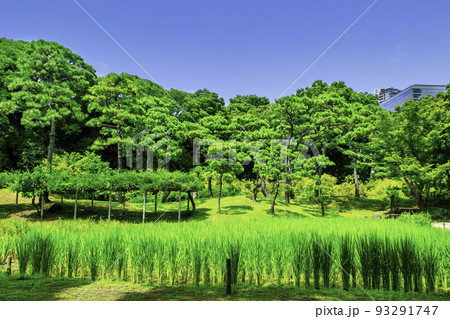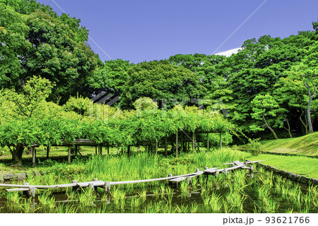 東京都 小石川後楽園 白糸の滝 新緑の初夏