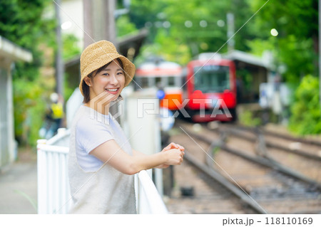 箱根を旅行する女性 旅行中の女性 休日を満喫する女性