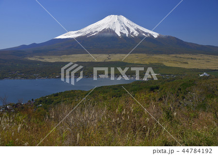 山中湖北部大平山 【秋】 新雪の富士山とハイキングコース