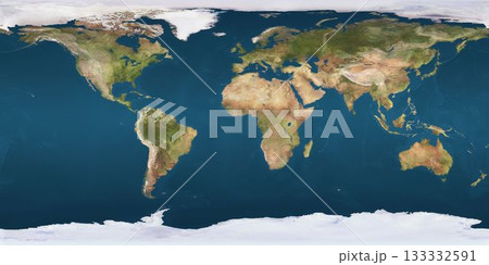 World map projection is showing continents, oceans, ice caps in flat design, transparent background