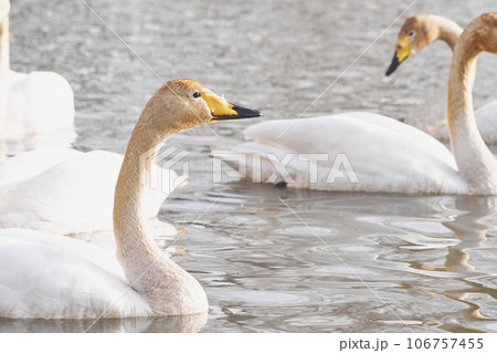 水を飲む北海道の春に訪れるハクチョウ