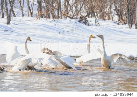 北海道の春に訪れるハクチョウのケンカ