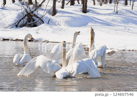 水を飲む北海道の春に訪れるハクチョウ