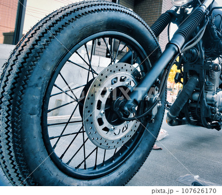 アメリカンバイクのスポークフロントタイヤ(フェンダーレス)