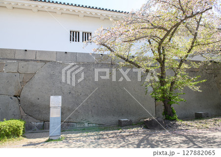 大阪城大手口枡形の巨石と桜/大阪府大阪市