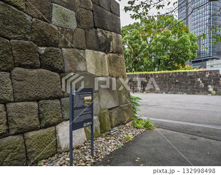 国指定史跡【常盤橋門跡】の石垣と解説板