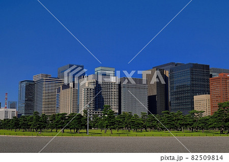 東京 皇居前広場から見る大手町ビル群