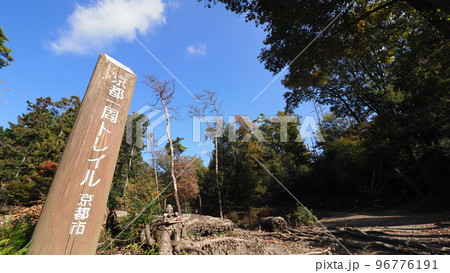 大阪府池田市 五月山公園 大文字コースと望海亭コースの分岐点に立つ行先表示板