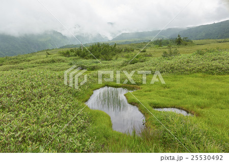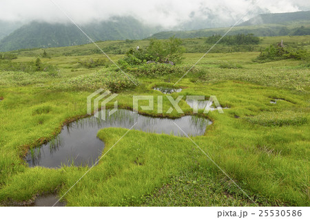 大日連山を背景にした池塘(餓鬼田)、立山弥陀ヶ原、富山県