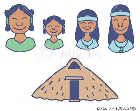古代人家族と家のイラスト