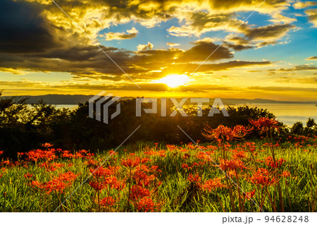 鉢巻山のヒガンバナ 夕陽 【長崎県大村市】