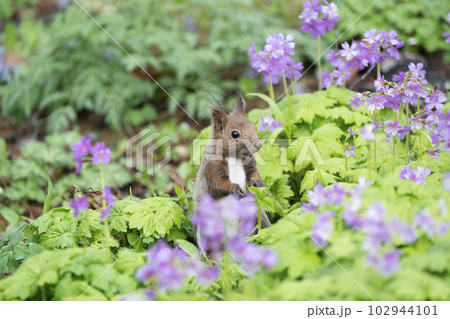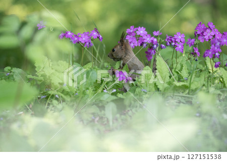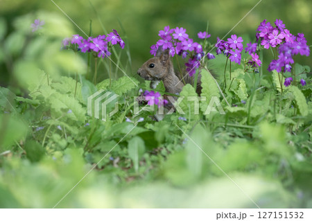 桜草とエゾリス