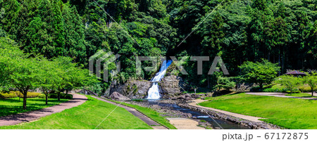 新緑の大樽の滝 河川公園やすらぎの里 パノラマ 【長崎県東彼杵郡】