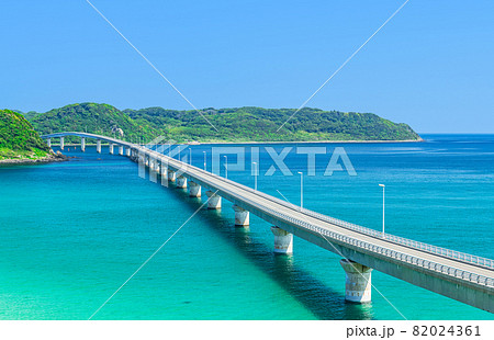山口県下関市 コバルトブルーの海と快晴の角島大橋