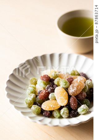 おやつに甘納豆 和菓子 甘味 お菓子 ほうじ茶