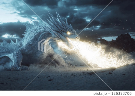 Majestic dragon illuminates the night sky with waves of light, transforming darkness into radiant day