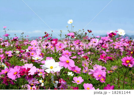 コスモスの花 白色 ピンク色