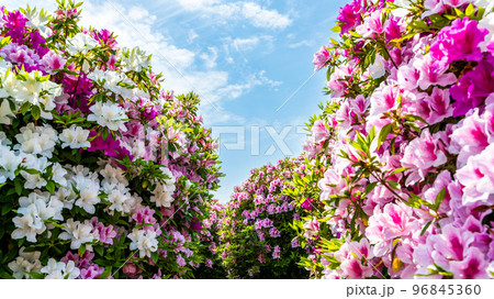 うららかな春の季節 ツツジの花「日本のツツジ百選・観光名所」九州・熊本県(昭和園)