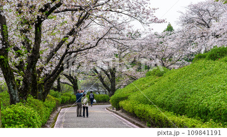 うららかな春の季節 公園内の桜 観光風景 (大津昭和園)