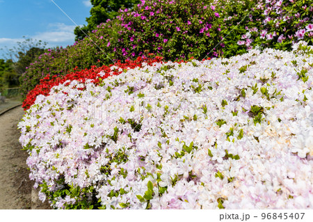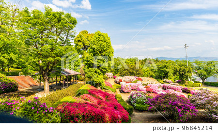 うららかな春の季節 春の花 観光名所:公園内風景「日本のツツジ百選・観光名所」九州・熊本県(昭和園)
