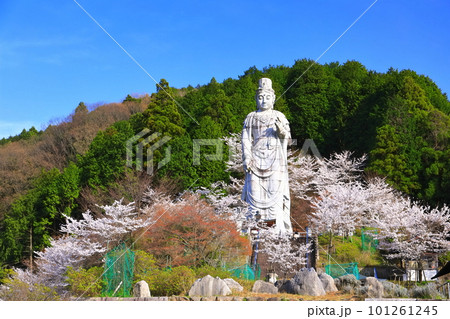 【奈良県】桜が満開の壺阪寺(大観音石像)