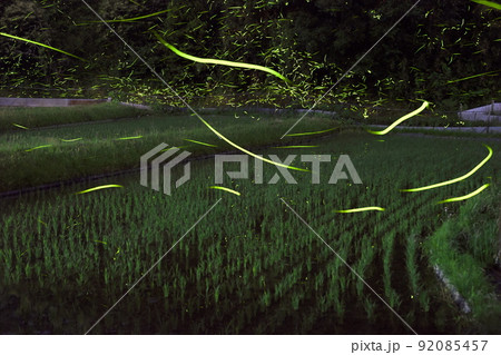 広い田圃の上を飛び回るホタル 奈良県大淀町