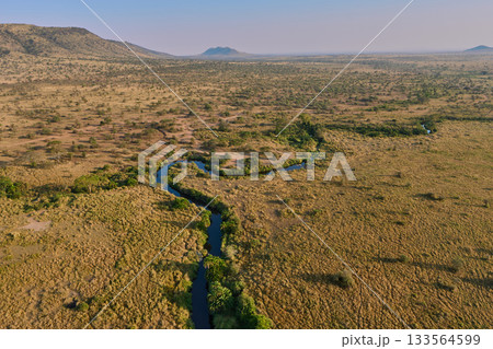 乾いた大地を潤す一本の川 ― セレンゲティ空撮