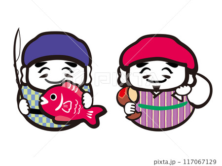 七福神の恵比寿天と大黒天のベクターイラスト